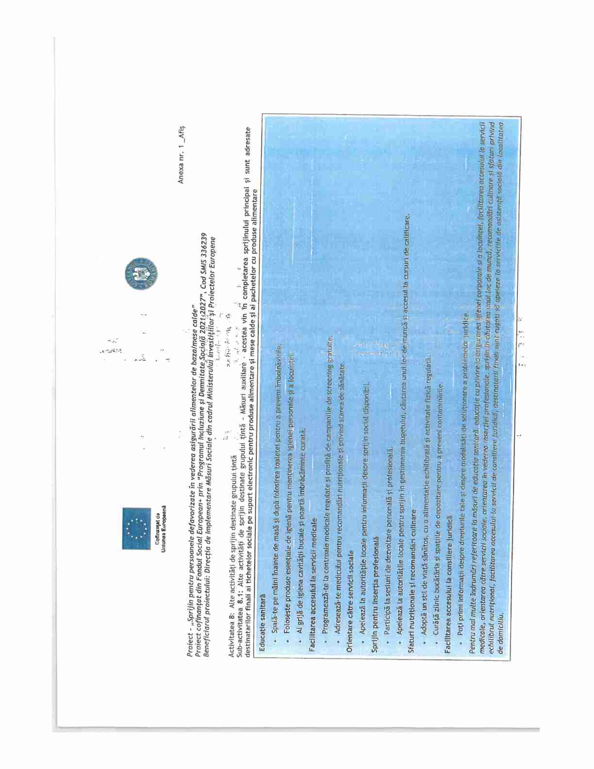 - ''Sprijin pt. pers. defavorizate in vederea asigurarii alimentelor de baza''